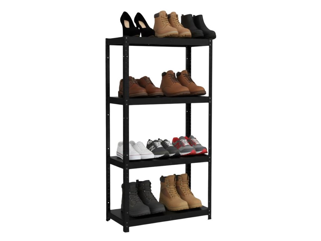 Lakovaný celokovový regál Mamutex Standard 1600x800x400 mm – 4 police, nosnost 480 kg, černý