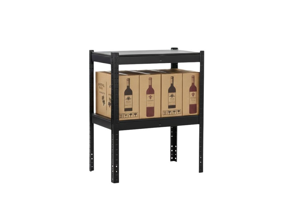 Široká základna a kovová konstrukce zajišťují pevnost a stabilitu. Regál je navržený tak, aby spolehlivě sloužil v domácnostech i menších provozech.