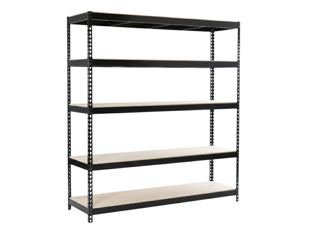 Pět polic s nosností až 300 kg každá při rovnoměrném rozložení zátěže. Ideální pro těžké boxy, nářadí i skladový materiál.