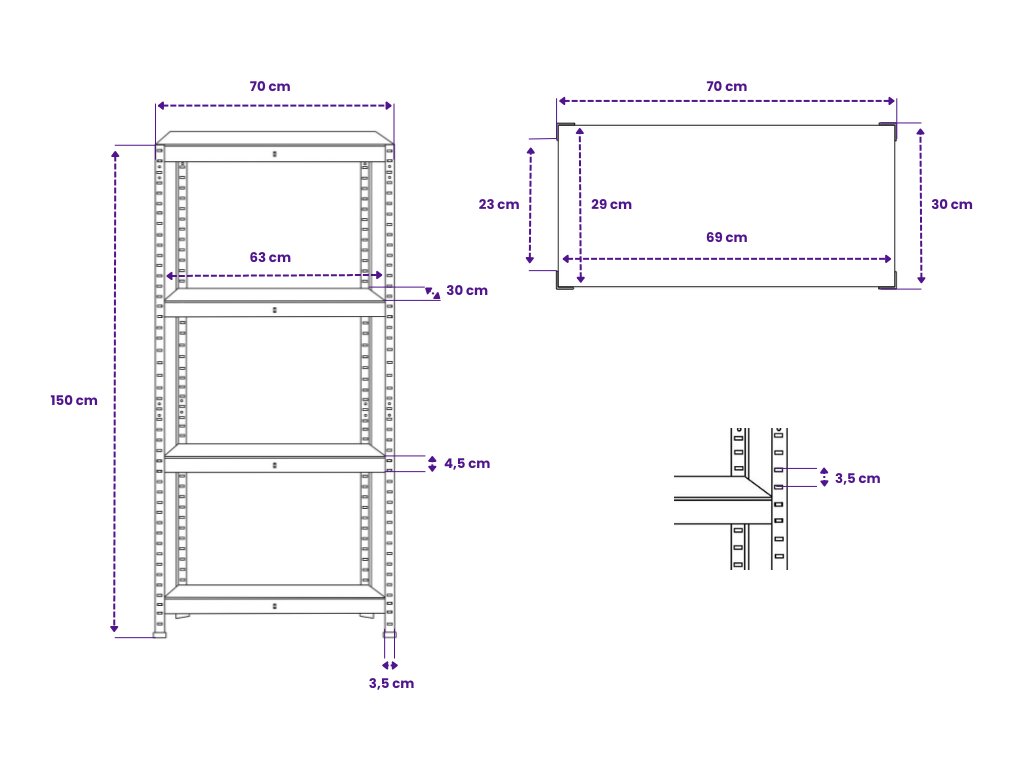 Vysoká stabilita a nosnost nejsou dílem náhody. Jsou výsledkem kombinace precizního profilování oceli, přesných spojů a středové výztuhy pod každou policí. Zatímco jinde můžete narazit na různé verze oblíbených rozměrů, u nás máte jistotu, že i za 10 let koupíte ten stejný model a snadno tak rozšíříte svou sestavu.