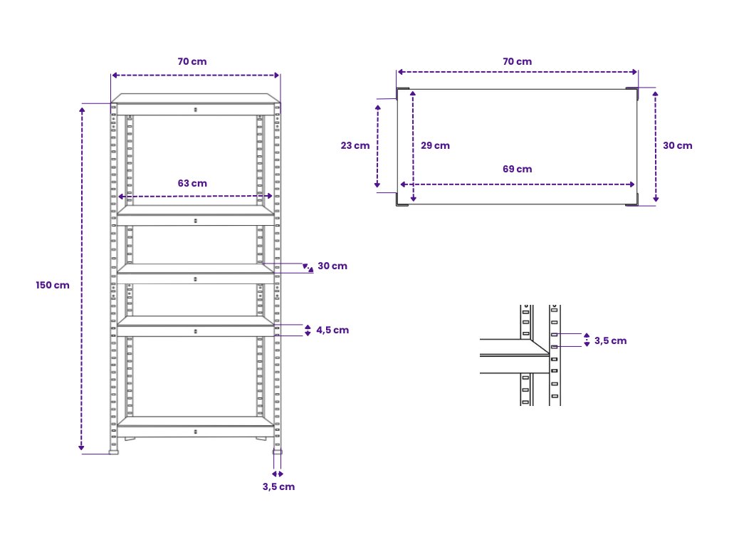 Vysoká stabilita a nosnost nejsou dílem náhody. Jsou výsledkem kombinace precizního profilování oceli, přesných spojů a středové výztuhy pod každou policí. Zatímco jinde můžete narazit na různé verze oblíbených rozměrů, u nás máte jistotu, že i za 10 let koupíte ten stejný model a snadno tak rozšíříte svou sestavu.