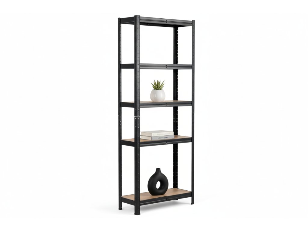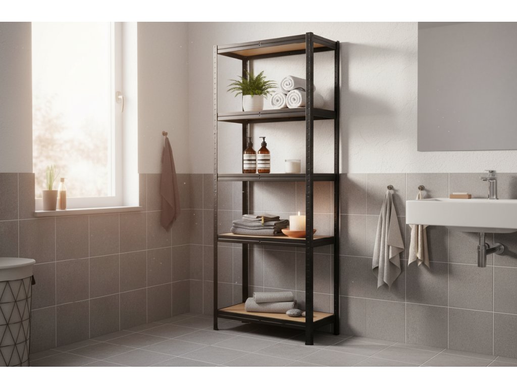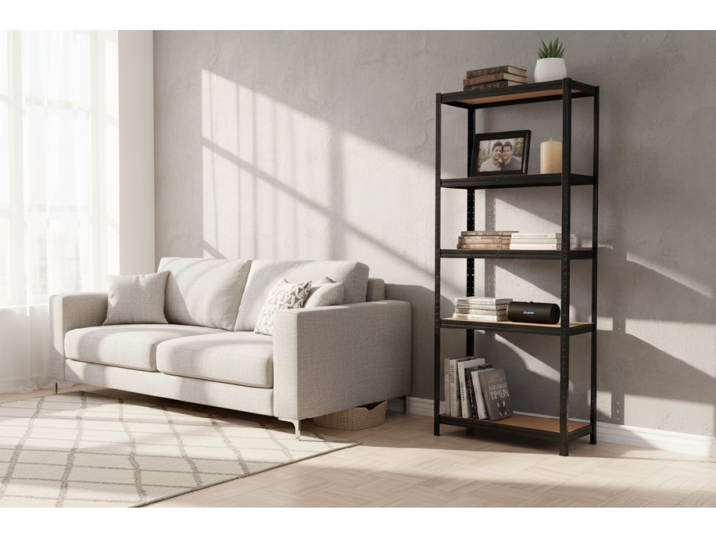 Ačkoliv je regál stabilní i samostatně, pro 100% jistotu a bezpečí – zejména v domácnostech s dětmi nebo při plném zatížení – doporučujeme jeho ukotvení ke zdi. Nejtěžší předměty vždy umisťujte do spodních polic.
