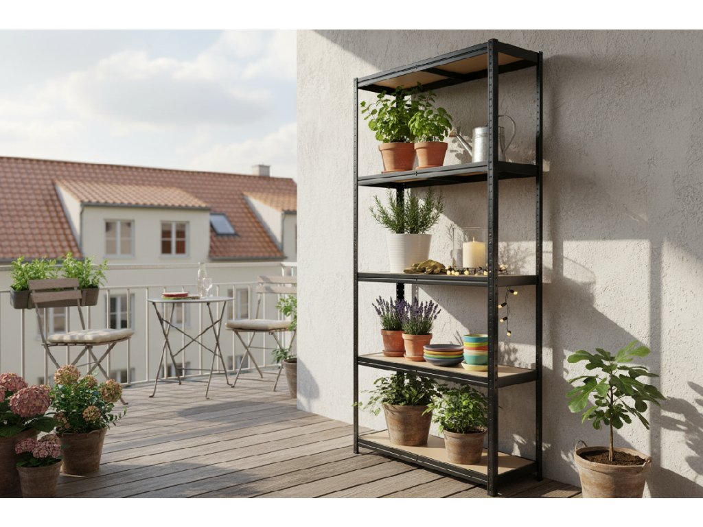 Tato lakovaná verze je estetičtější a ideální do čistých interiérů. Pokud hledáte regál do vlhčího sklepa či garáže, doporučujeme zvolit spíše variantu s pozinkovanou úpravou.