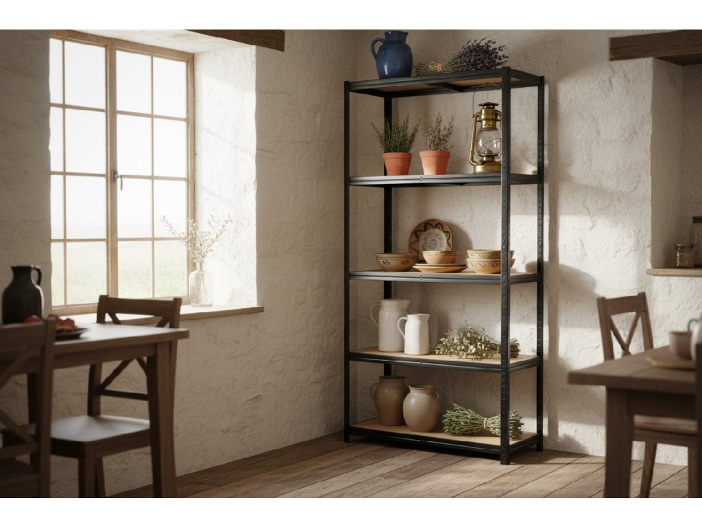 Standardní výška stropů v bytech je cca 250-260 cm. Regál vysoký 200 cm se tak pohodlně vejde a nechá vám ještě dostatek prostoru pro manipulaci nebo uložení věcí na horní polici.
