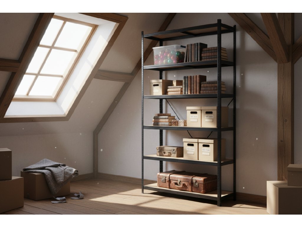 Vysoká stabilita a nosnost nejsou dílem náhody. Jsou výsledkem kombinace precizního profilování oceli, přesných spojů a středové výztuhy pod každou policí. U polic této šířky (120 cm) je pro minimalizaci přirozeného průhybu klíčové rovnoměrné rozložení zátěže. Jsou ideální pro skladování v boxech a pro objemné, rozměrné předměty.