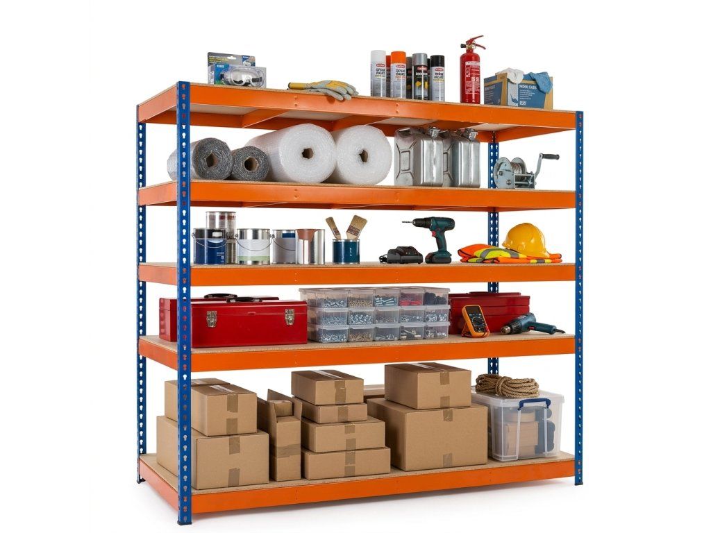 Lakovaný modro-oranžový regál Mamutex Heavy 2200x1500x800 mm - 5 polic, nosnost 2500 kg