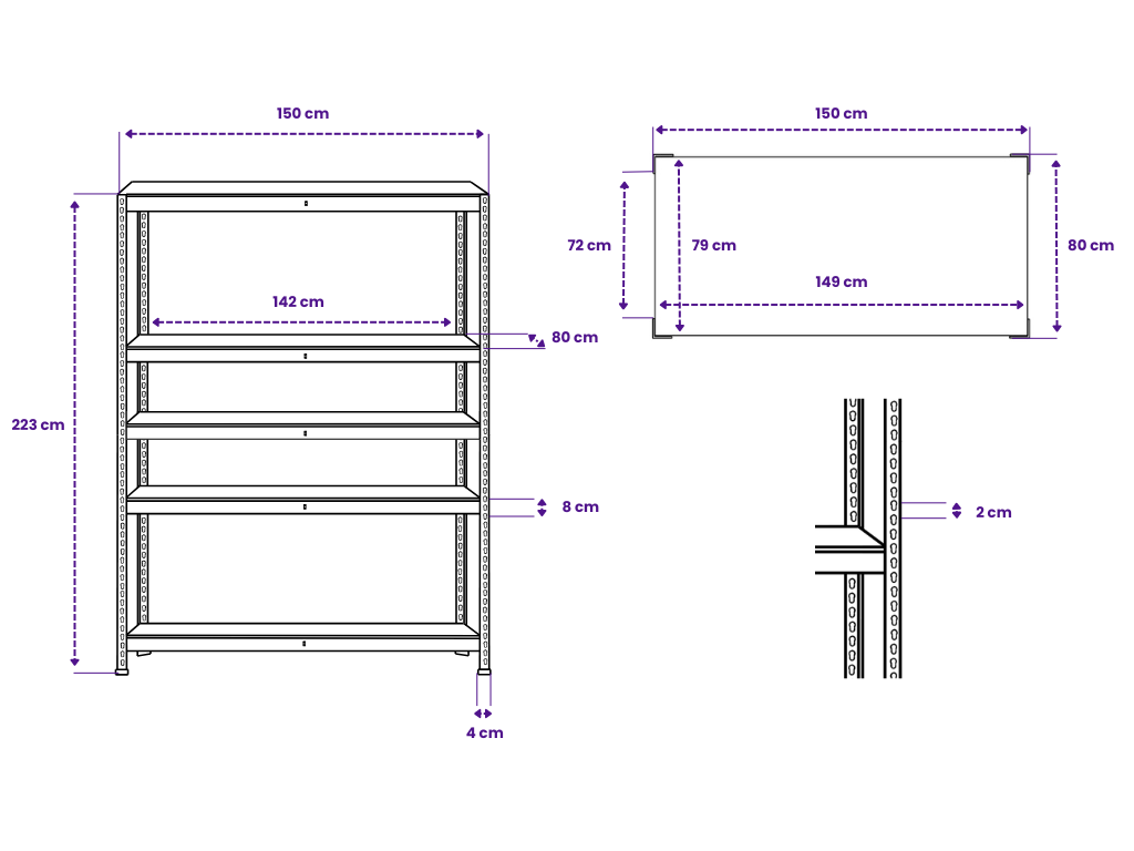 Ideální rozměr pro sklady a garáže, kde chcete využít prostor nad hlavou, ale stále mít ke všem policím pohodlný přístup i bez vysokého žebříku.