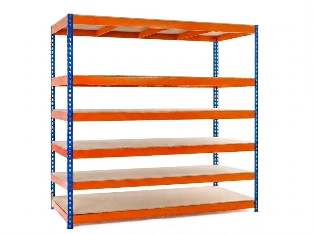 Lakovaný modro-oranžový regál Mamutex Heavy 2600x1500x400 mm - 6 polic, nosnost 3000 kg