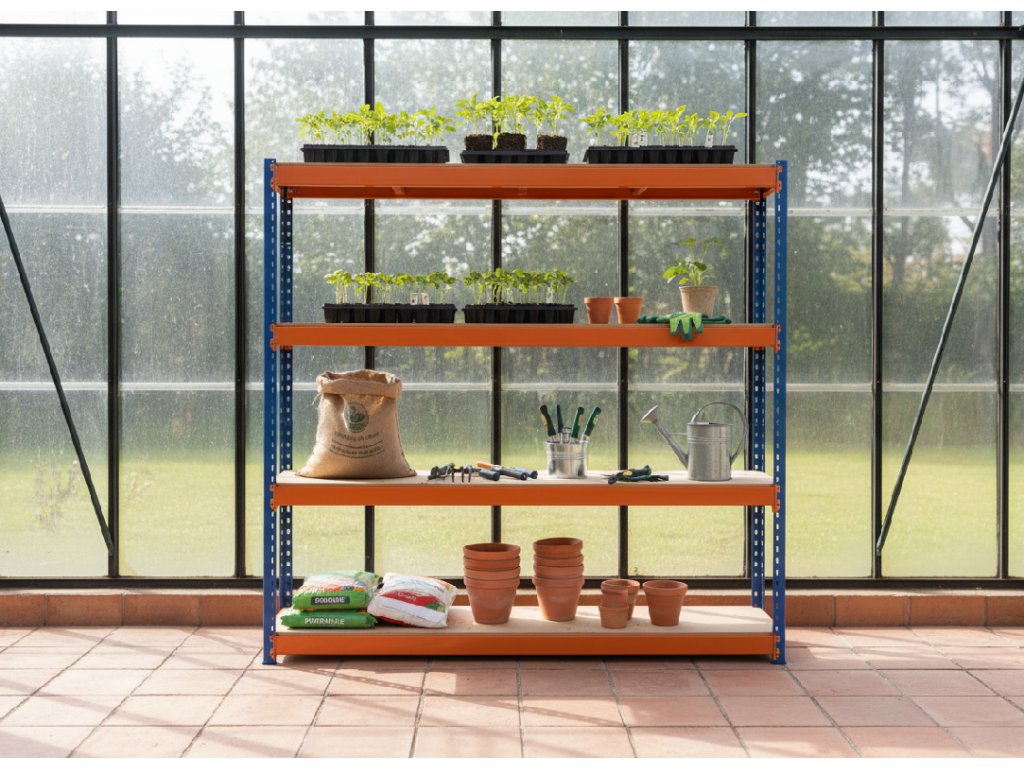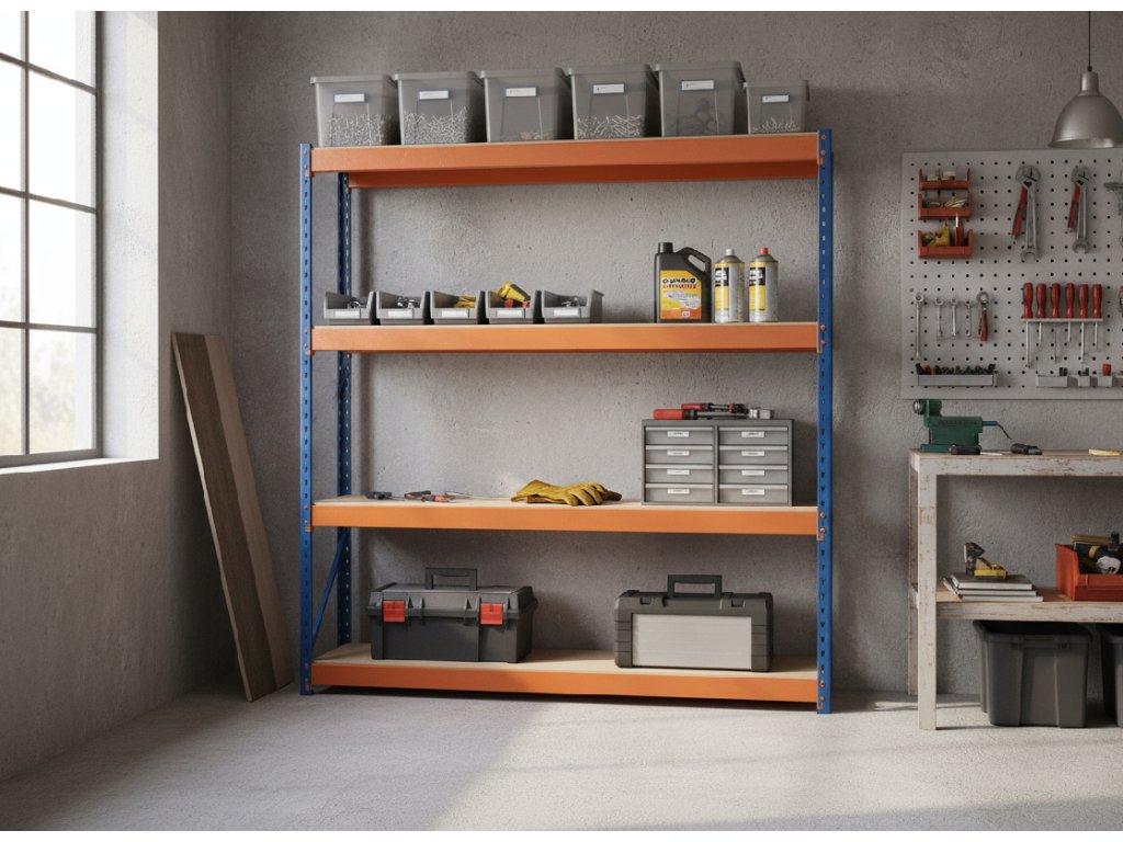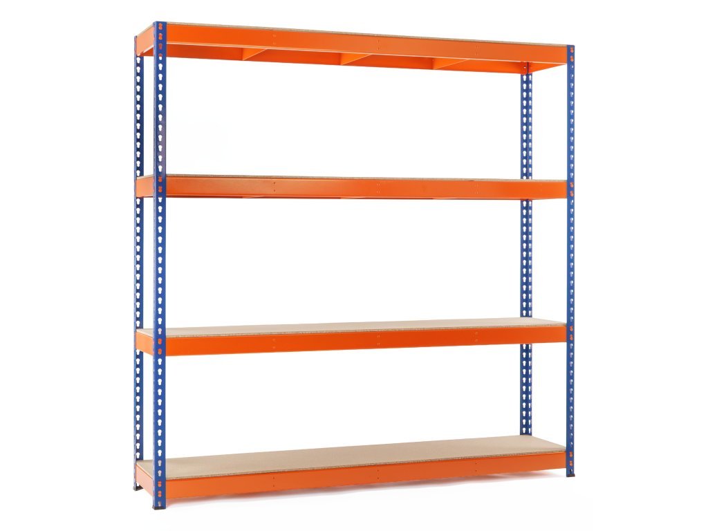 Lakovaný modro-oranžový regál Mamutex Standard 1800x1200x400 mm – 4 police, nosnost 2000 kg