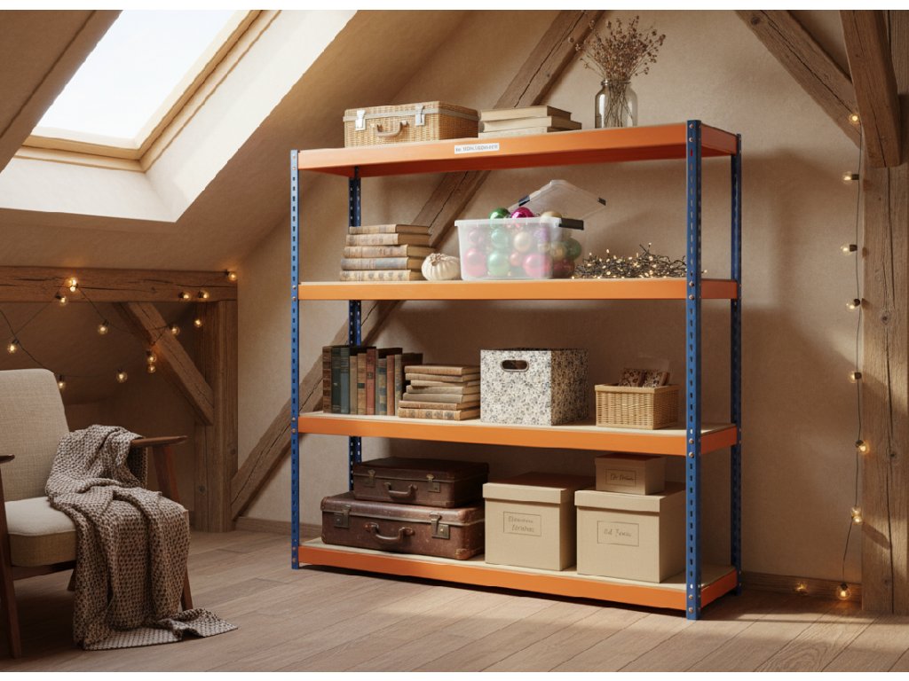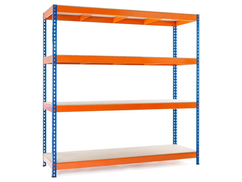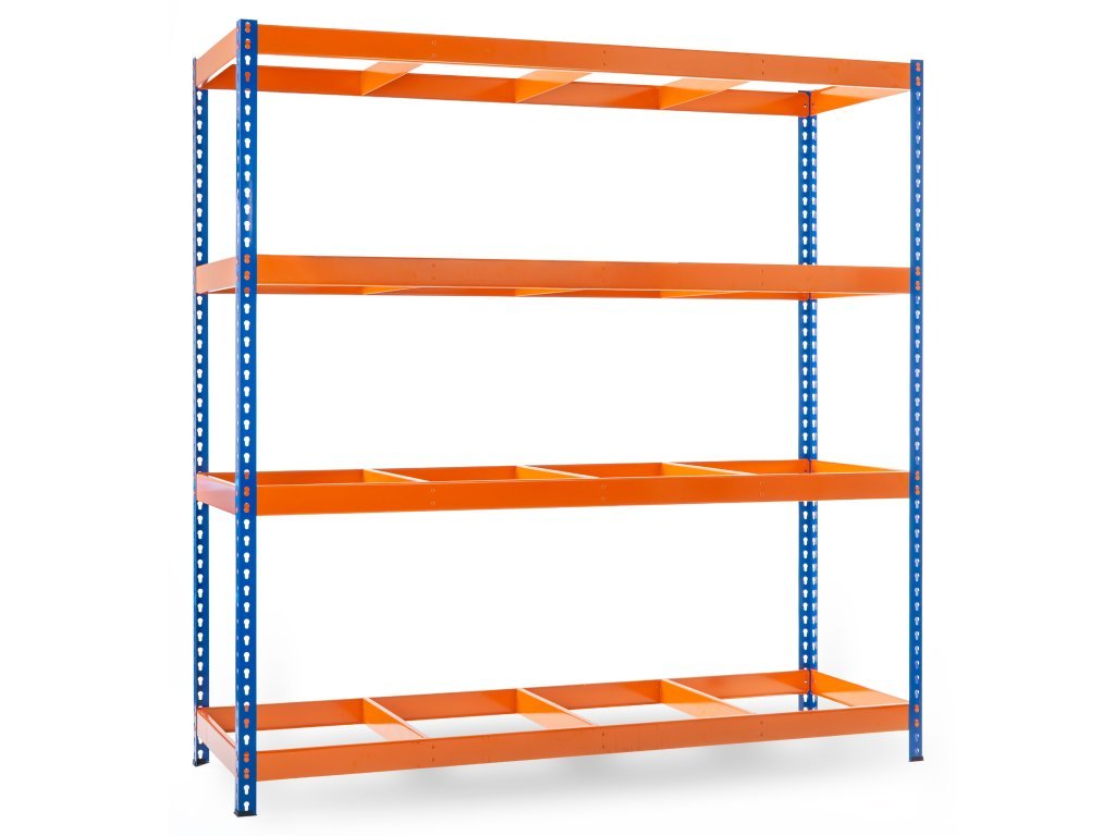 Lakovaný modro-oranžový regál Mamutex Standard 1800x1200x600 mm - 4 police, nosnost 2000 kg