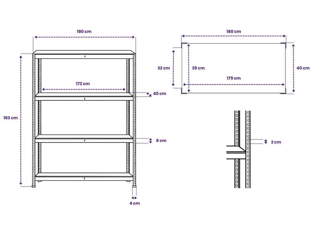 Extrémní nosnost 2000 kg je výsledkem použití silných ocelových profilů a robustních středových výztuh pod každou policí. Tato konstrukce zajišťuje mimořádnou tuhost a stabilitu i při plném zatížení. Zatímco jinde můžete narazit na různé verze tohoto populárního rozměru, u nás máte jistotu, že i za 10 let koupíte ten stejný model a snadno tak rozšíříte svou sestavu.