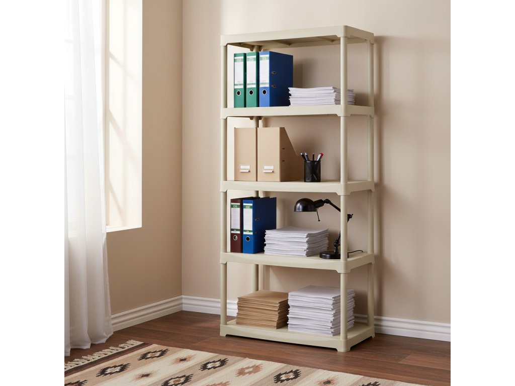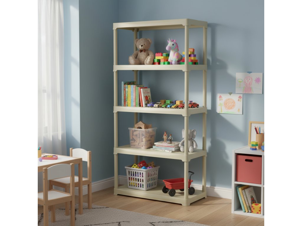 Béžový plastový regál je stabilní, prostorný a snadno se čistí. Díky neutrální barvě zapadne i do interiéru. Hodí se na skladování ručníků, čisticích prostředků, potravin nebo hraček. Montáž zvládnete během pár minut.