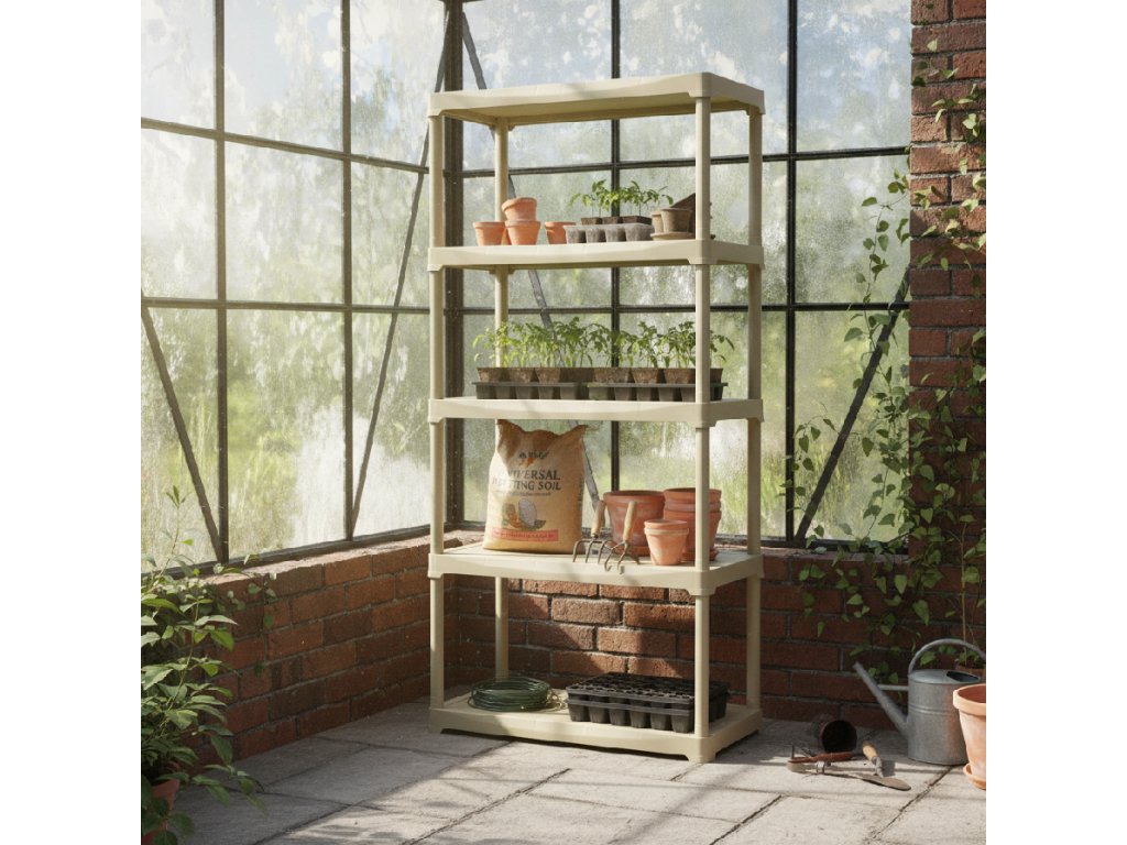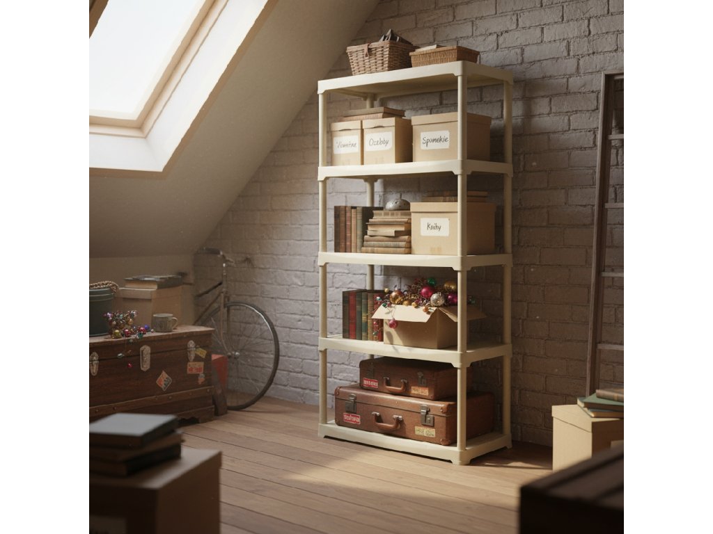 Potřebujete prostorný a praktický úložný regál, který se hodí i do domácnosti? Tento plastový regál o rozměrech 176x80x40 cm v béžové barvě nabízí 5 polic s celkovou nosností 150 kg. Díky světlému odstínu působí elegantně a zapadne i do interiéru prádelny, spíže či dětského pokoje.