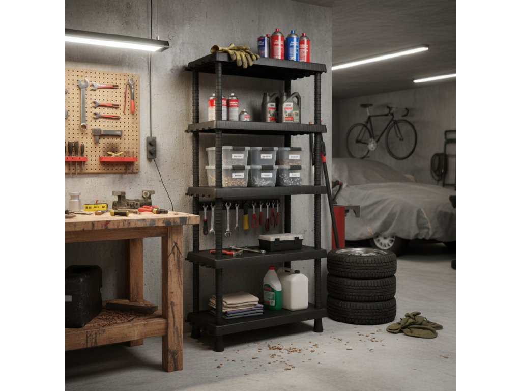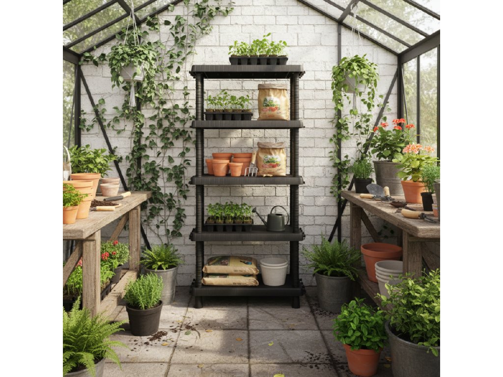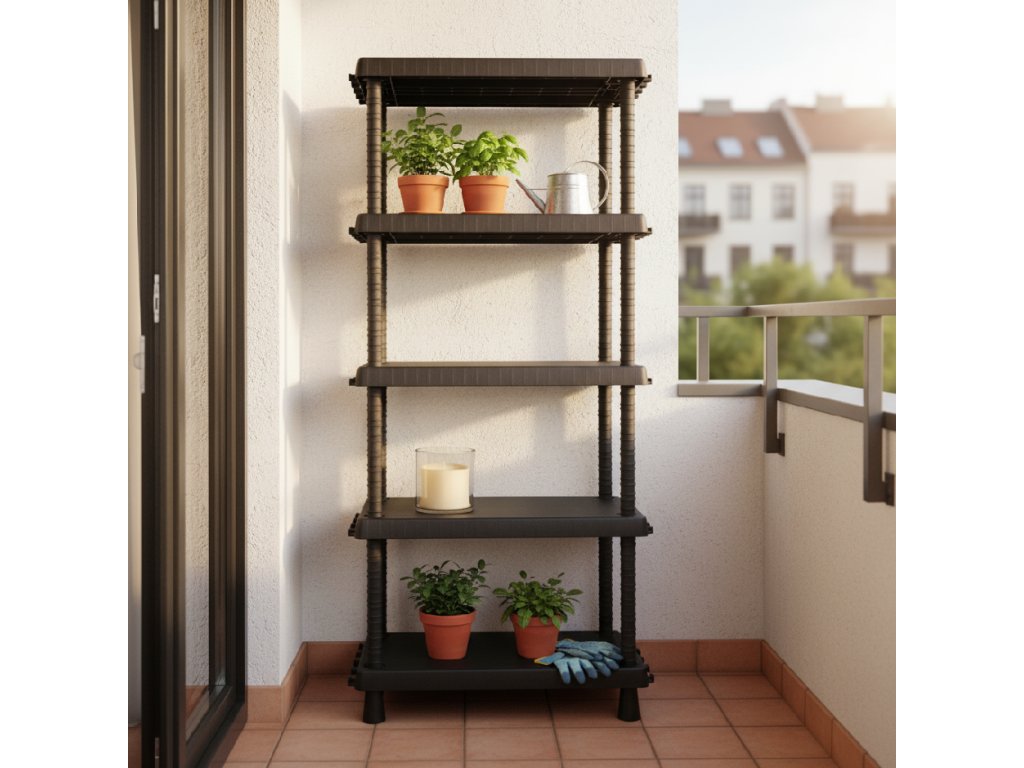 Tento regál není jen obyčejné úložiště – díky možnosti nastavení výšky polic, háčkům a robustní konstrukci se přizpůsobí všemu, co potřebujete. Hodí se do interiéru i exteriéru, od spíží přes prádelny až po balkony. Snadná údržba a montáž bez nářadí jsou samozřejmostí.