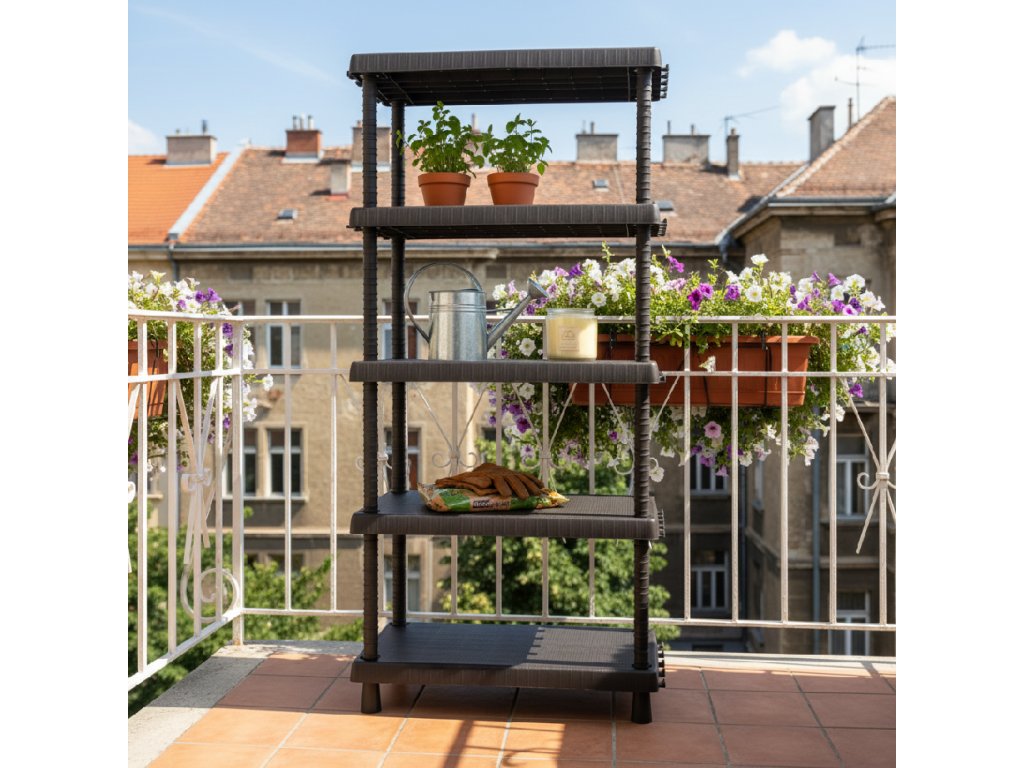 Ano, plastová konstrukce odolává vlhkosti a povětrnostním vlivům, proto se hodí i na balkon nebo do zahradního domku.