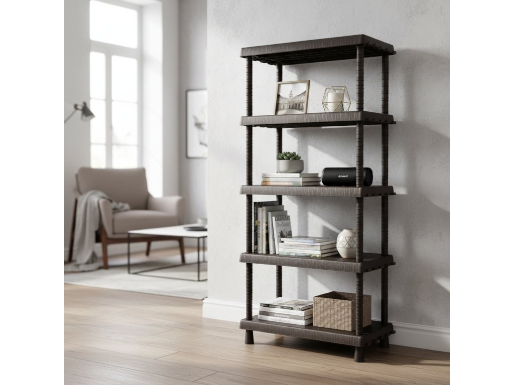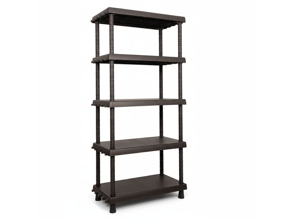 Potřebujete větší úložný prostor, který se přizpůsobí vašim potřebám? Tento plastový regál o rozměrech 164,5x82x40 cm nabízí 5 polic s celkovou nosností 225 kg, až 40 možností výškového nastavení a 5 praktických háčků na každé polici. Díky extra vyztužené konstrukci je stabilní a hodí se i do vlhkých prostor, uvnitř i venku. Snadno se čistí, nezadržuje pachy a jeho montáž zvládnete bez nářadí.