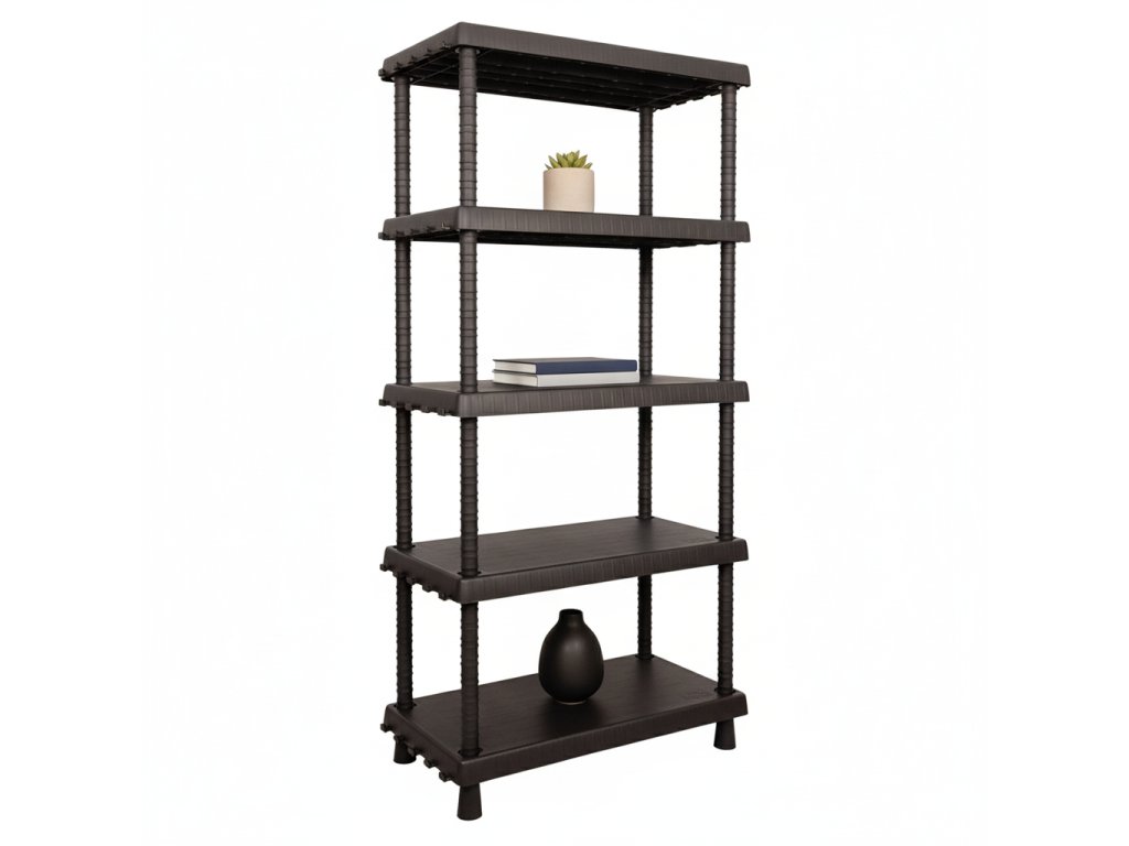 Plastový regál Mamutex VARIO 1645x820x400 mm - 5 polic, nosnost 225 kg, černý