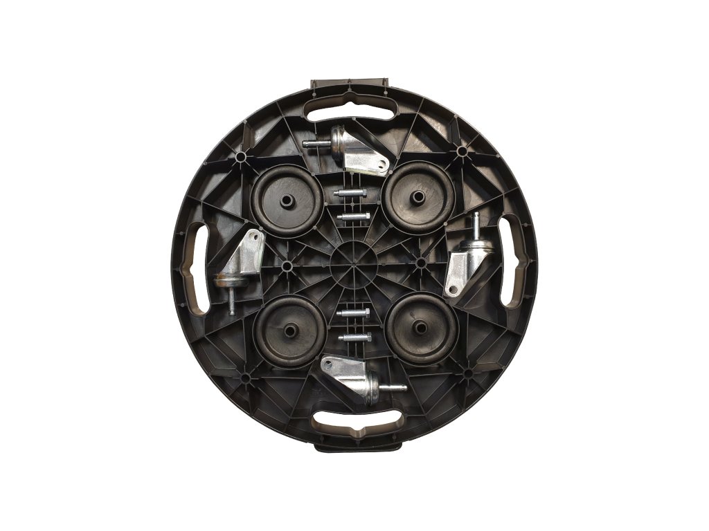 Kulatý přepravní vozík kombinuje jednoduchost, odolnost a flexibilitu. Snadno propojitelný s dalšími vozíky a vybavený otvory pro zavěšení, šetří místo a zároveň spolehlivě poslouží při každodenní manipulaci s věcmi.
