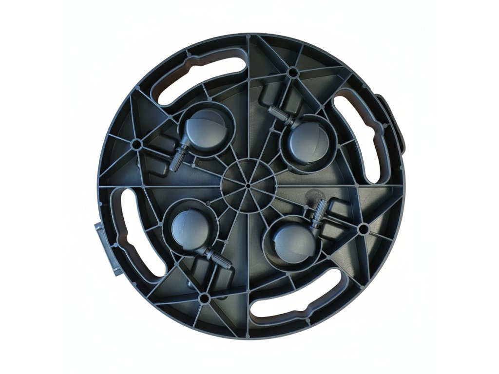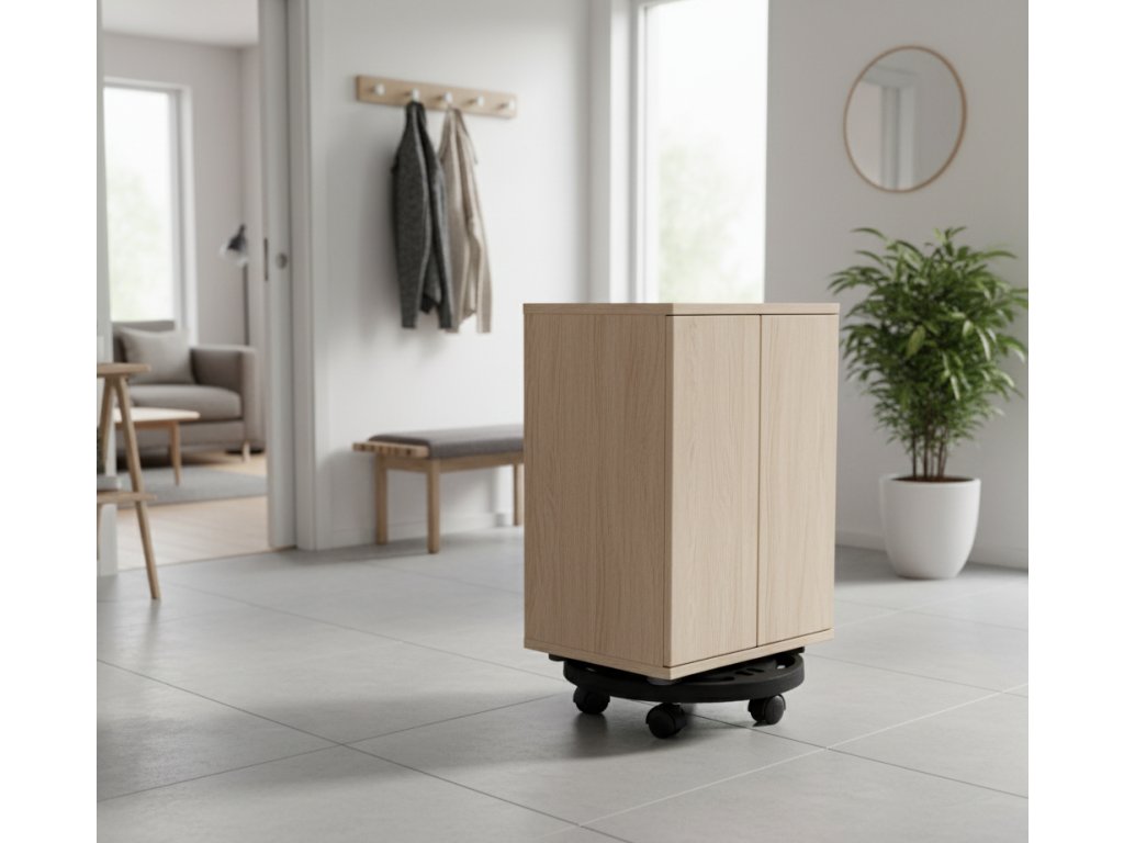 Potřebujete snadno přesouvat objemnější věci v domácnosti, kanceláři nebo skladu? Tento kulatý plastový přepravní vozík o průměru 30 cm a výšce 7 cm je kompaktní, lehký, ale přesto stabilní. Díky čtyřem otočným kolečkům a držadlům po stranách je manipulace s ním vždy pohodlná a bezpečná. Navíc ho můžete propojit s dalšími vozíky a vytvořit tak větší přepravní plochu.