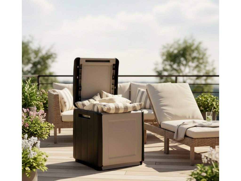 Kompaktní rozměry, velký objem a odolný materiál dělají z tohoto úložného boxu skvělé řešení pro venkovní i vnitřní použití. Ať už ho využijete na terase, v chodbě nebo na balkoně, vždy vám pomůže udržet věci přehledně a bezpečně uložené.
