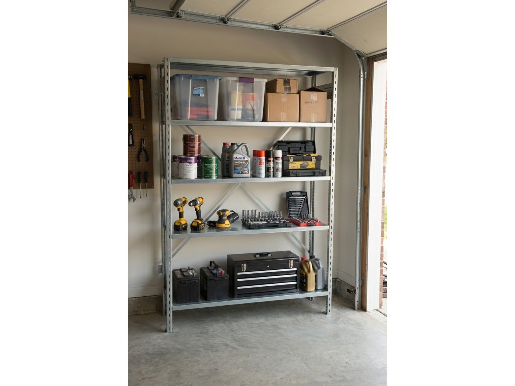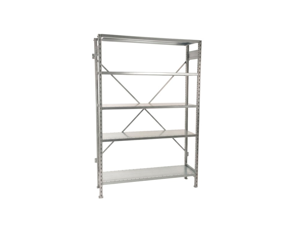 Regál je pevný, stabilní a přestavba polic je rychlá. Pozinkovaná úprava působí bytelně a bezúdržbově.