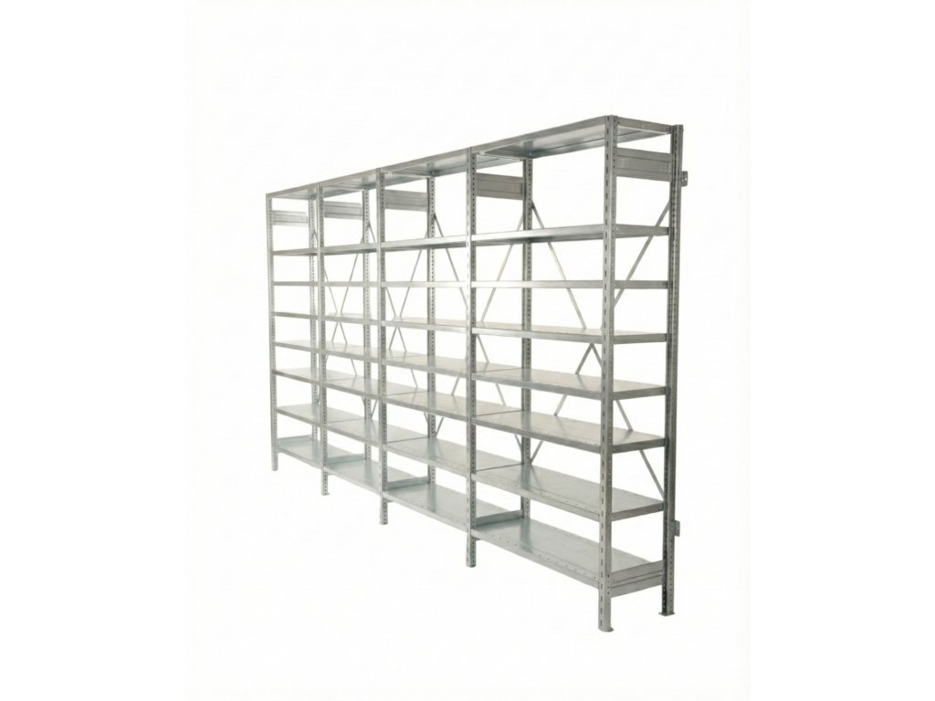 Pozinkovaná povrchová úprava chrání regál proti korozi a prodlužuje jeho životnost i v náročných provozech.