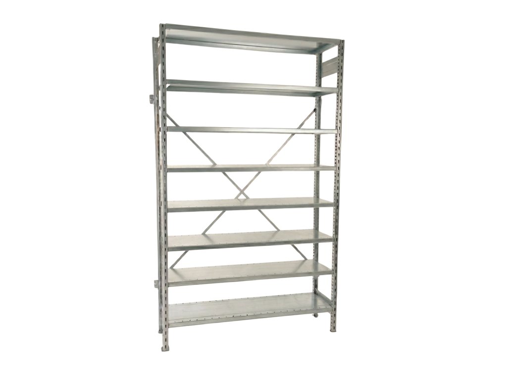 Zinkovaný celokovový regál STOW 3000x1000x500 mm - 8 polic, nosnost 1280 kg - ZÁKLADNÍ MODUL