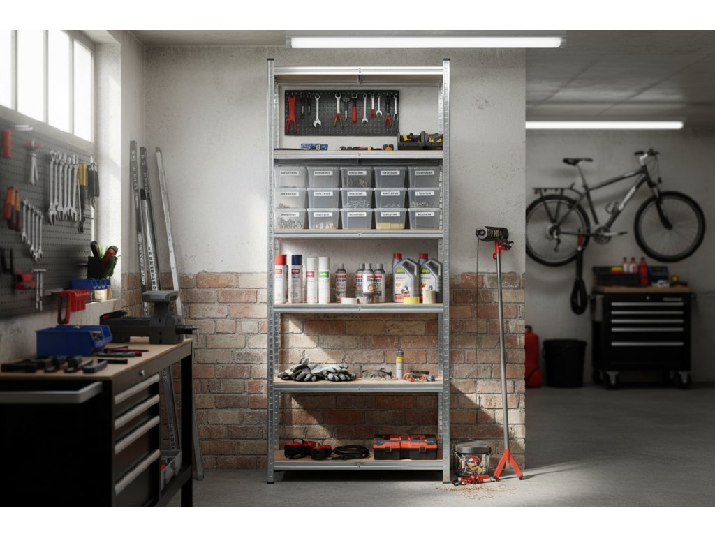Moje garáž má vysoký strop a já toho chtěl konečně využít. Tento 240cm regál je přesně ono. Postavil jsem tři vedle sebe a mám teď celou stěnu jako jeden velký a přehledný sklad.