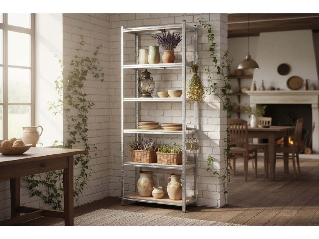 Pro pohodlný a bezpečný přístup k nejvyšším policím regálu vysokého 240 cm budete potřebovat stabilní domácí schůdky. Proto jsou horní patra ideální pro dlouhodobě skladované věci.